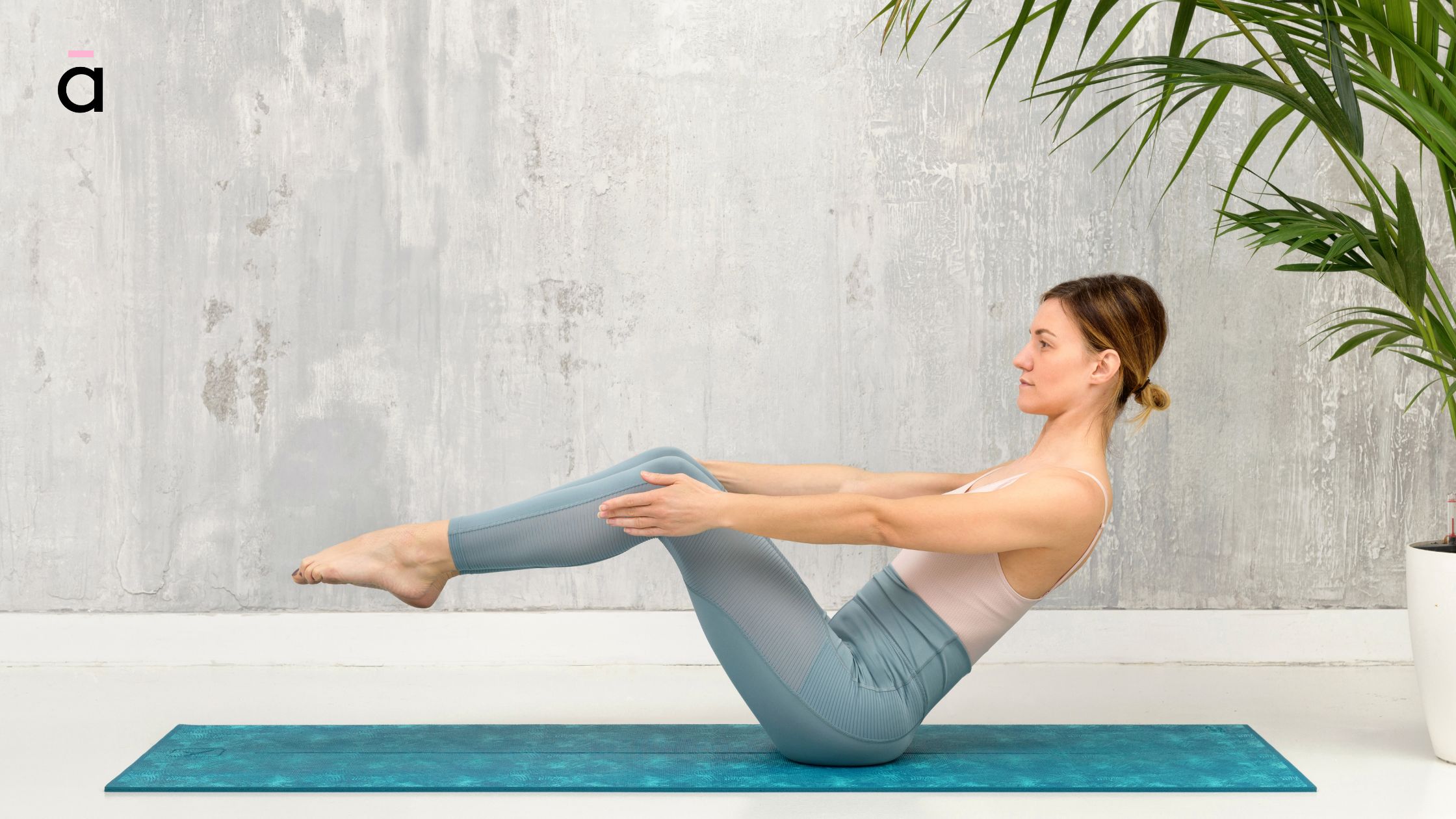 This classic mat-based move challenges your balance and strengthens your core without needing to stand or roll down. It’s a staple in many beginner-friendly online Pilates classes.